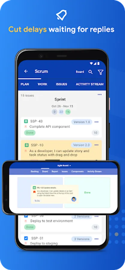 Never miss critical issue updates: whether in a meeting, on vacation or away from the computer - Jira access on any device.