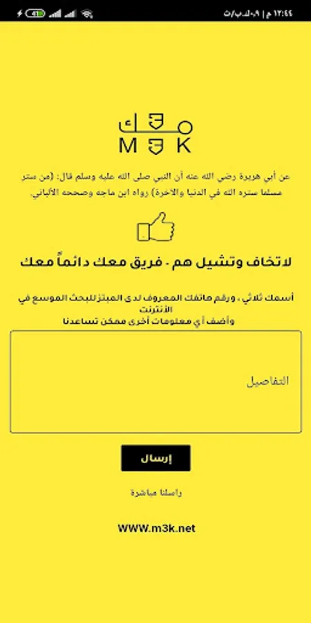 Application specialized in the fight against electronic blackmail of all kinds in the world (with you always with you), in the event of an electronic blackmail from within the territory of Saudi Arabia the application can not serve you you must go to report via the application of all our security or call the number 1909 to combat information crimes, but if You have experienced a problem from outside the territory of Saudi Arabia to do with you always with you.