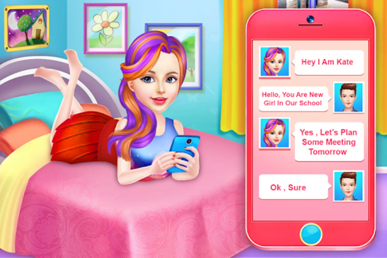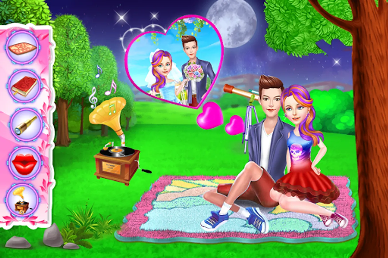 A beautiful feeling that we all feel is love. We love parents, friends, relatives, pets, then grow up and fall in love, we are going to marry and build a family. Today you will have great fun, you will love this game because you will have the chance to help a young couple hide their love story. This is in love with a boy who goes to the same school with her. The two have met for months and now they want to go to town. You will have to go home and help her prepare for the meeting. The love story must remain secret so be very careful around, no one should see the two in the park.
