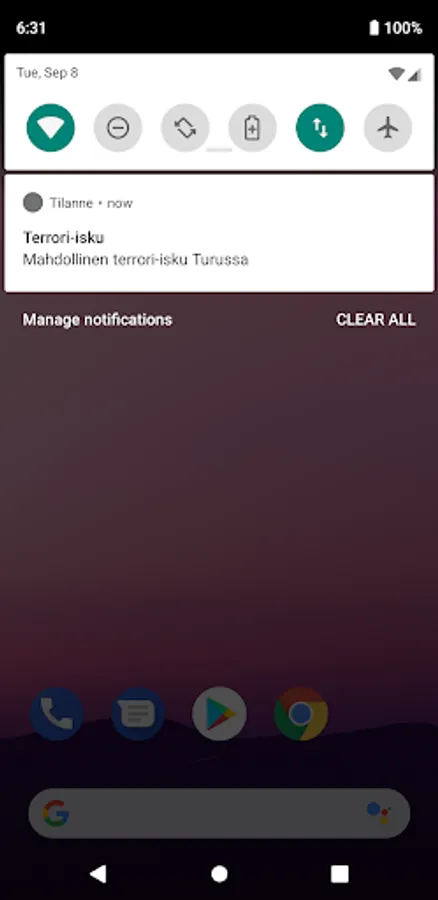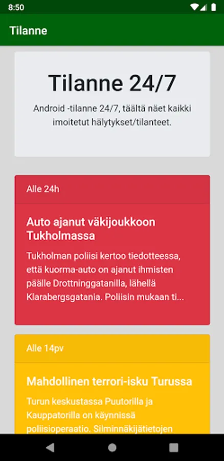The situation 24/7 notifies and shows if something big / significant is happening in Finland or in the world.