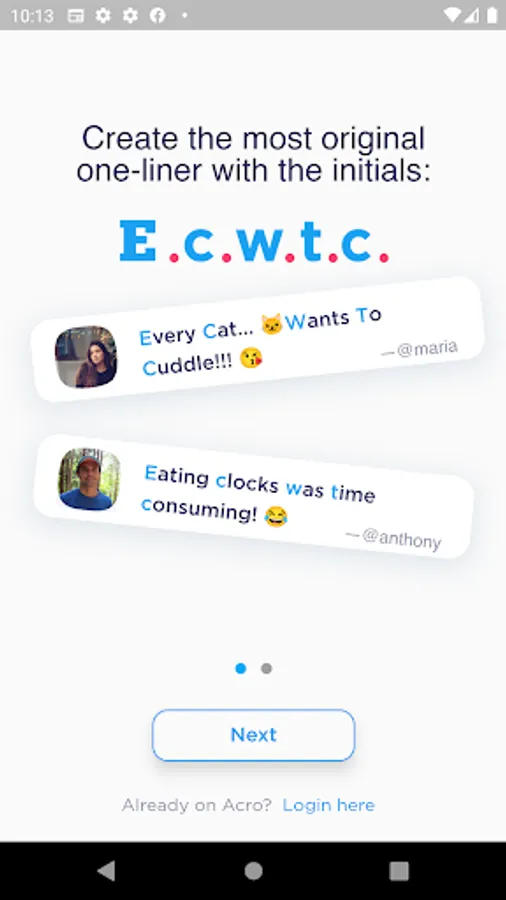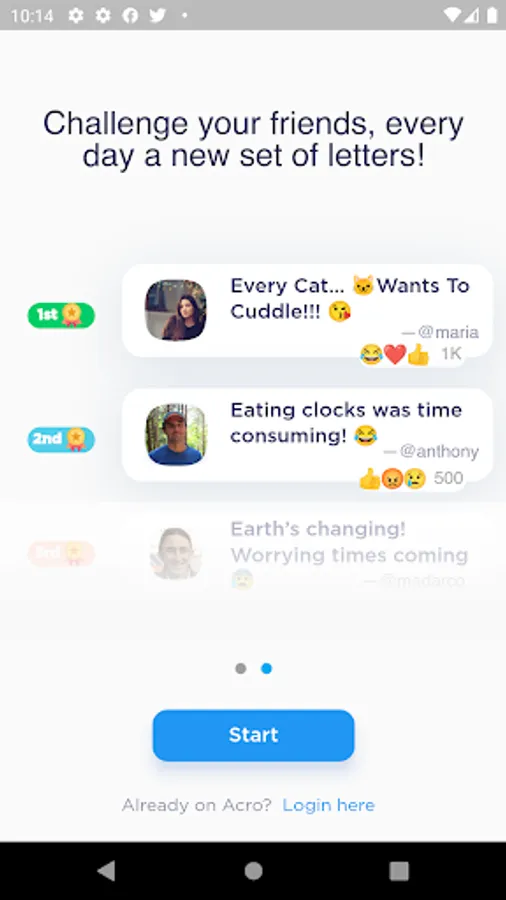 ACRO: is a social word game where you challenge your friends to be the most creative author of a one-liner.