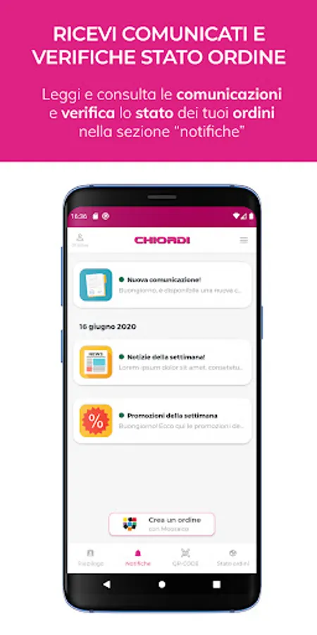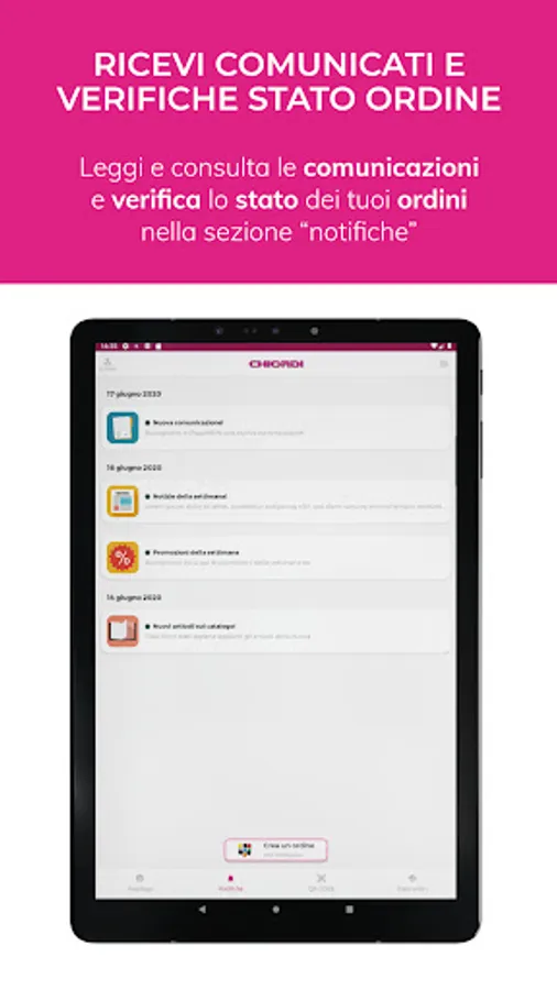 Thanks to its features you can have your personal QR code, receive notifications of press releases and view the status of your orders.