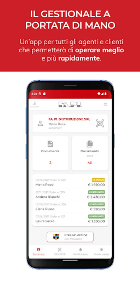 Fa. Pi. Distribuzione Srl is the app designed for agents and customers of Fa. Pi. Distribuzione Srl that gives you everything you need to create, manage orders and save time.