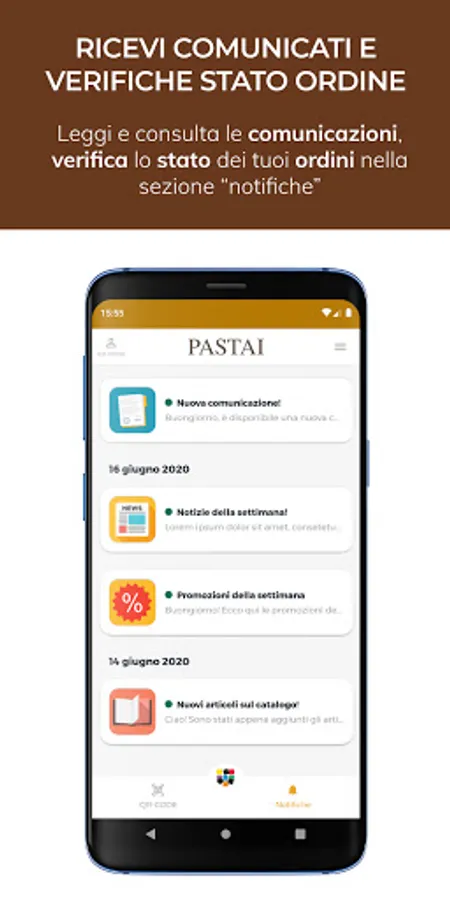 Thanks to its features you can have your personal QR code, receive notifications of press releases and view the status of your orders.