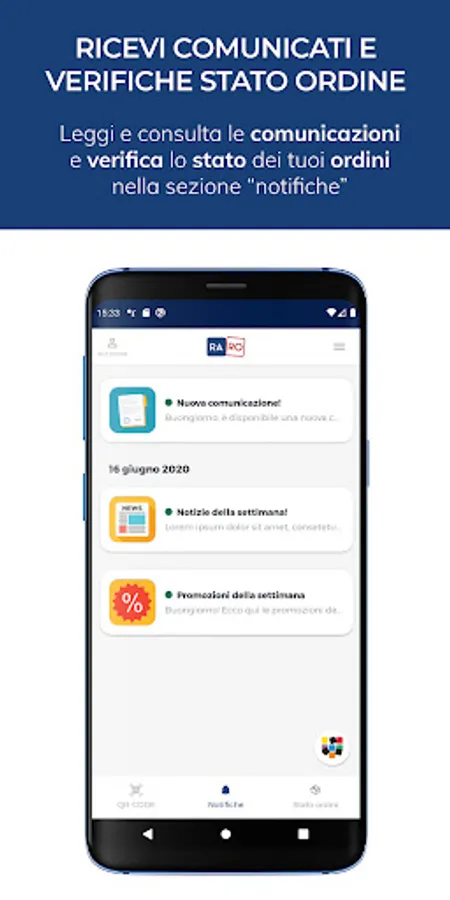 Thanks to its features you can have your personal QR code, receive notifications of press releases and view the status of your orders.