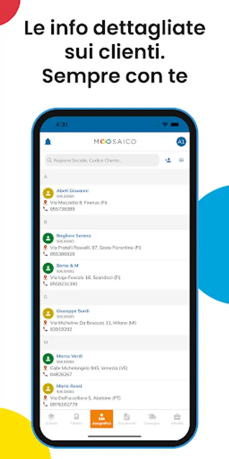 Moosaico is a mobile application for the management and control of your sales and assistance network which, with a simple and intuitive interface, guarantees the user to operate quickly and flexibly, with all the information always available even in the absence of connectivity.