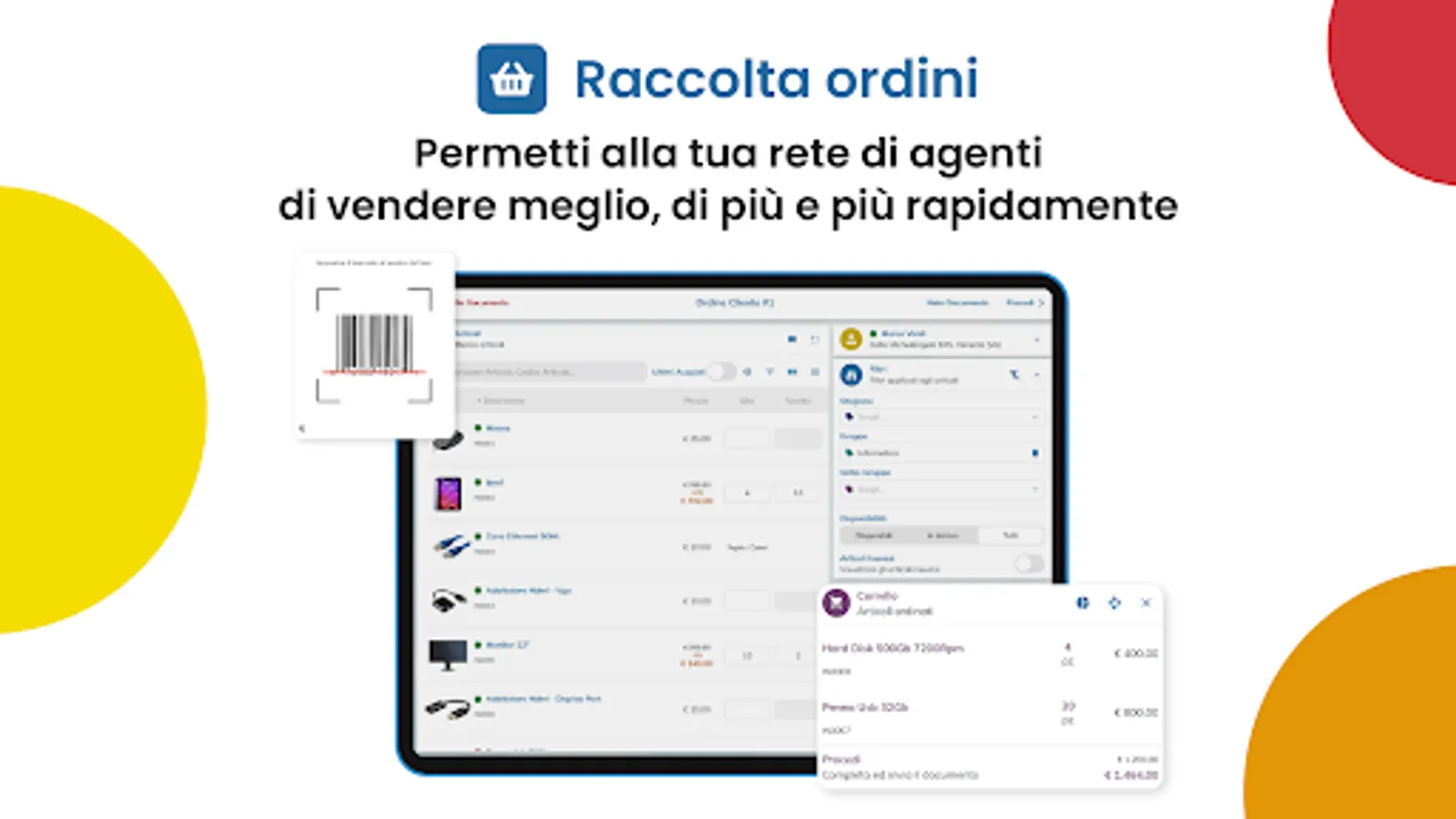 • Order management. It allows the collection and management of orders directly from the customer, which can also be used offline and also manages customer master data at the same time.
