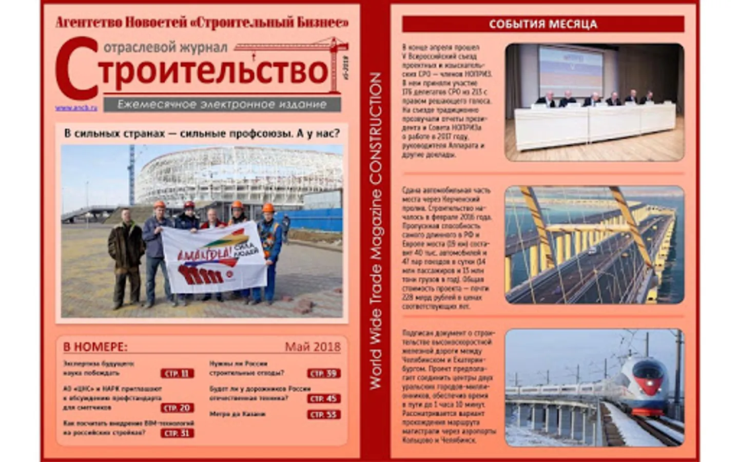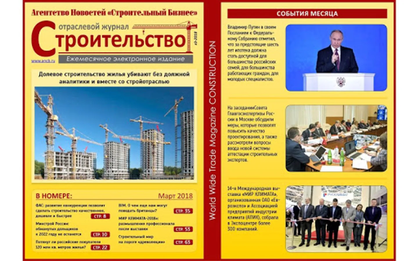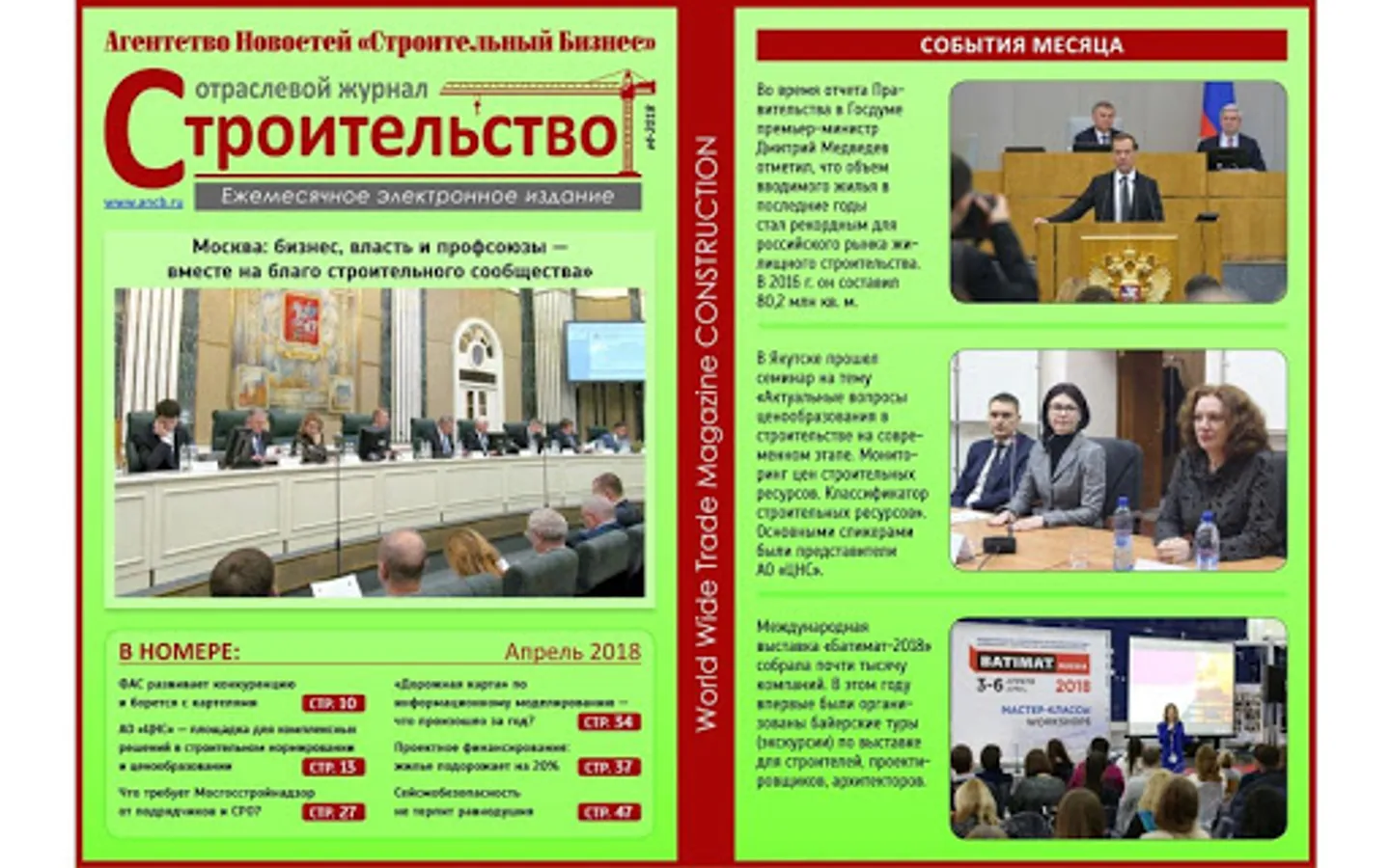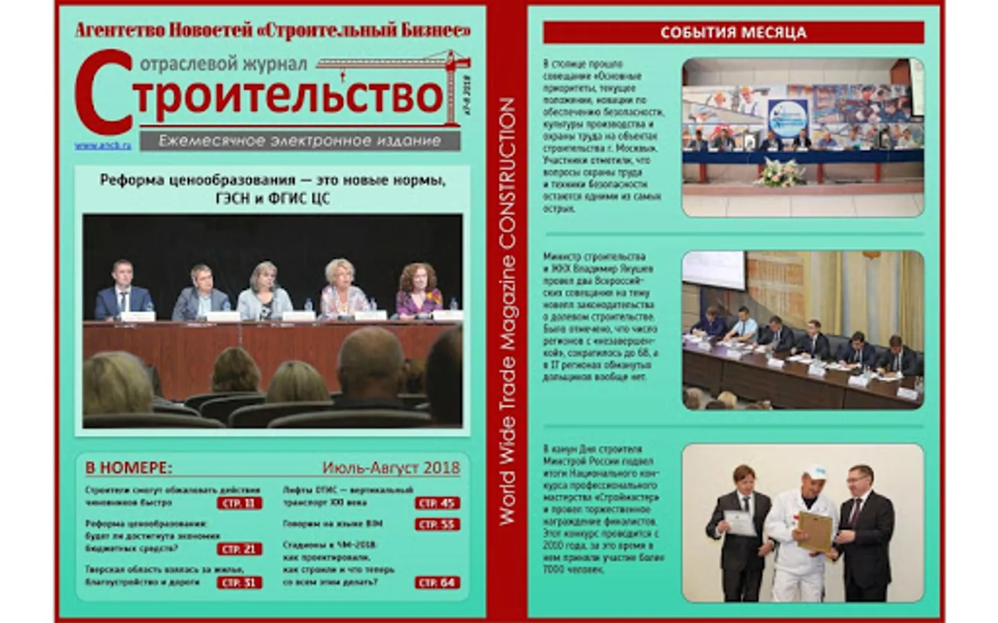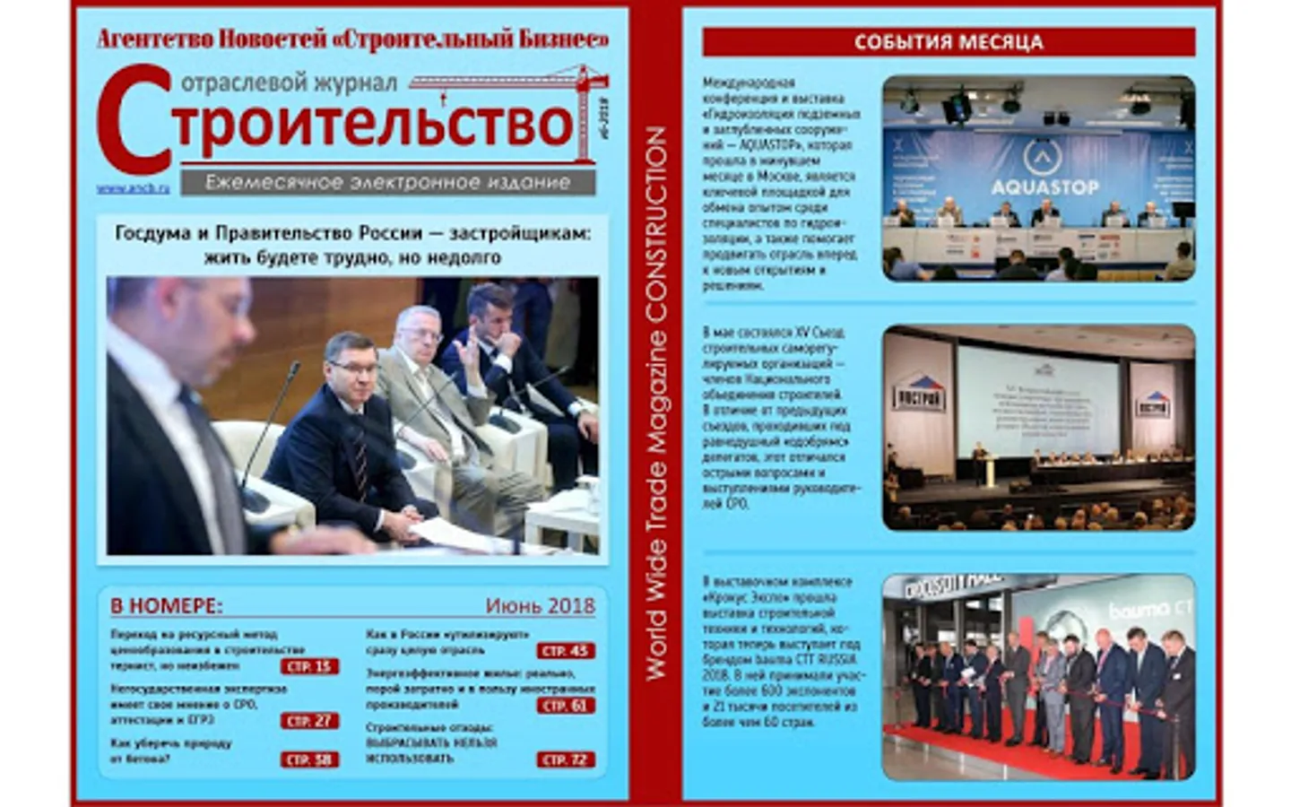 The magazine is intended for professionals in the construction industry. The purpose Publishing - professionally competent, objective, balanced coverage of the situation in the construction and related industries. Published only exclusive articles on the presentation of new technologies, construction materials, machinery, equipment, issues of construction management, etc.