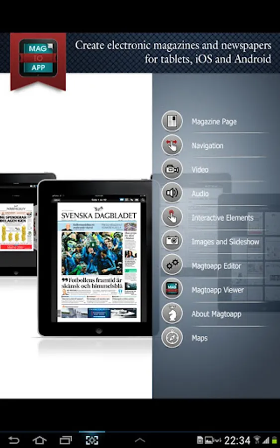 Create your own digital magazines for tablets (Android and iOS). Magtoapp Viewer is a part of a service that lets you create an app for a magazine, newspaper or product catalogue without any programming knowledge.