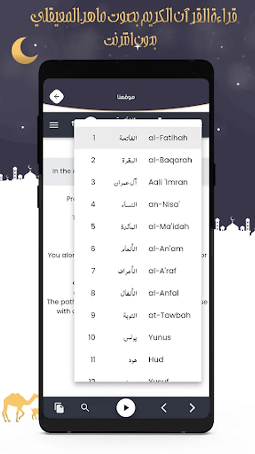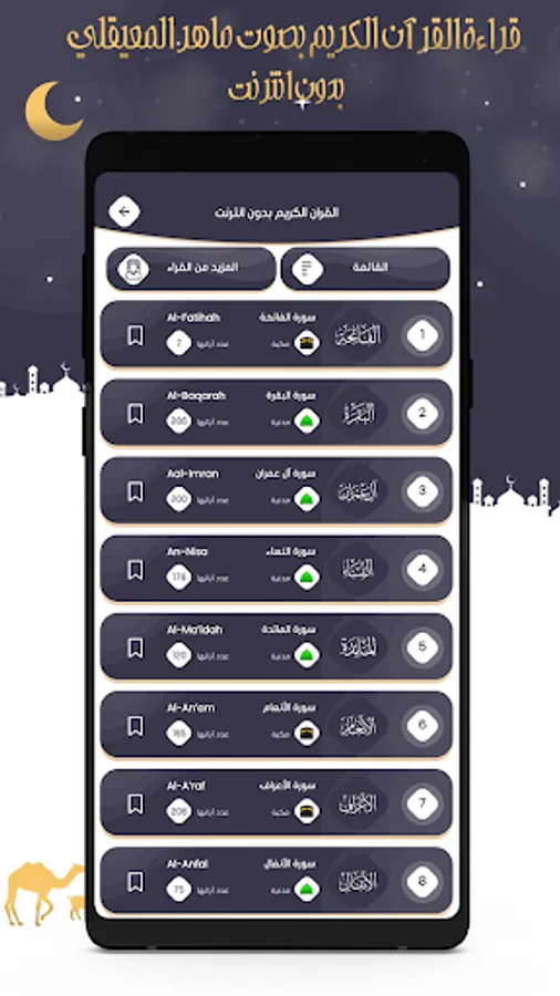 After downloading the application, you can listen to the surahs of the Noble Qur’an with the voice of Sheikh Maher Al-Moaqly for free, anytime and anywhere with ease.