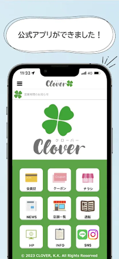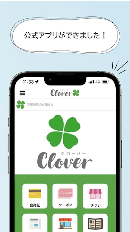 The "Clover Official App" delivers the latest information and advantageous information at any time.