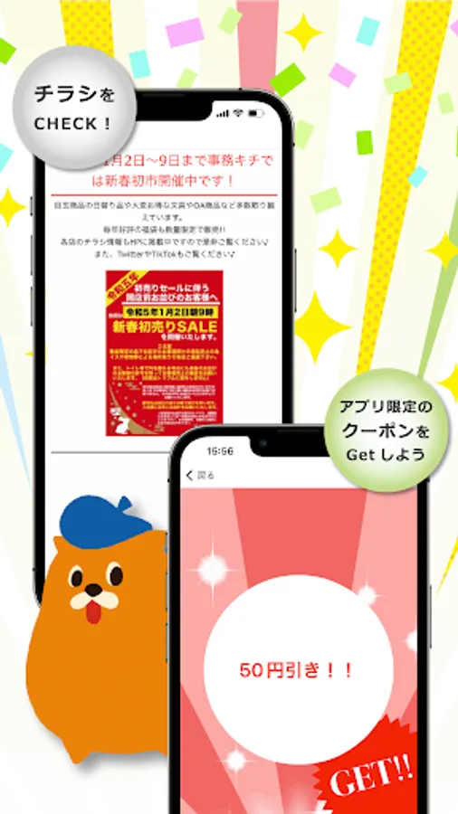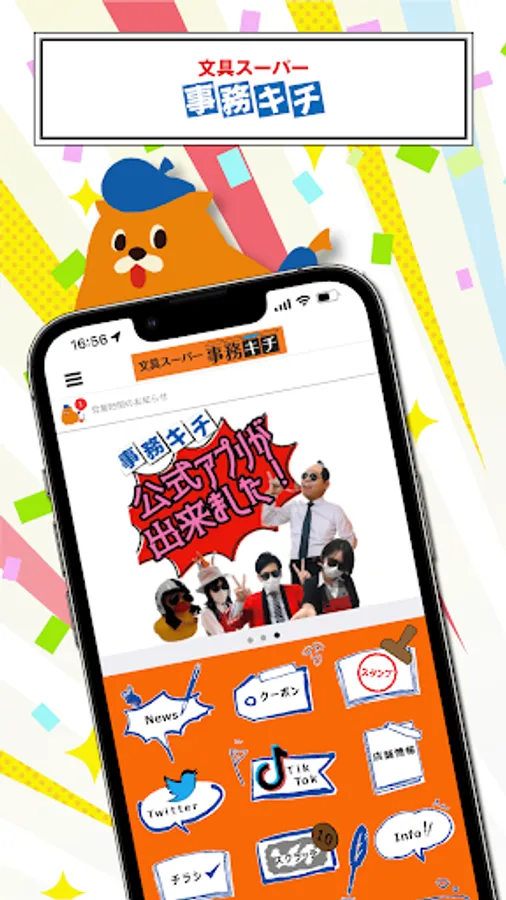 The "Stationery Super Office Kichi Official App" delivers the latest information and advantageous information from time to time.