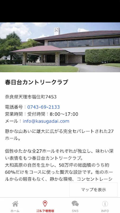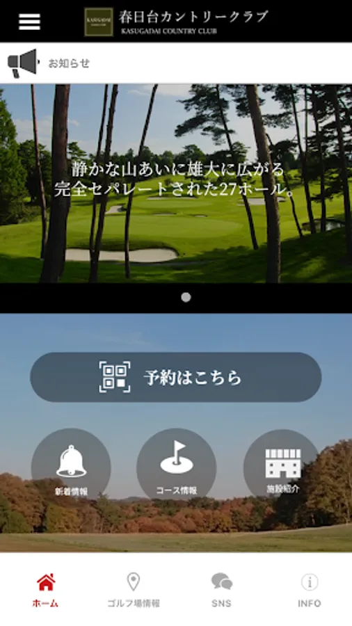 This is the official app of "Kasugadai Country Club" located in Fukuzumicho, Tenri City, Nara Prefecture. Kasugadai Country Club has 27 individual holes, each of which is independent and has a tasteful expression.