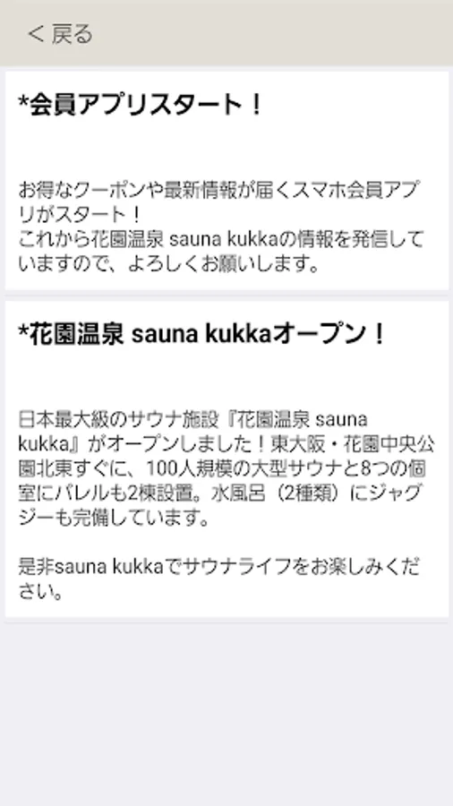The official app of Hanazono Onsen sauna kukka will inform you of the latest information and events from time to time.
