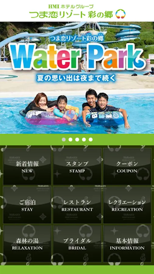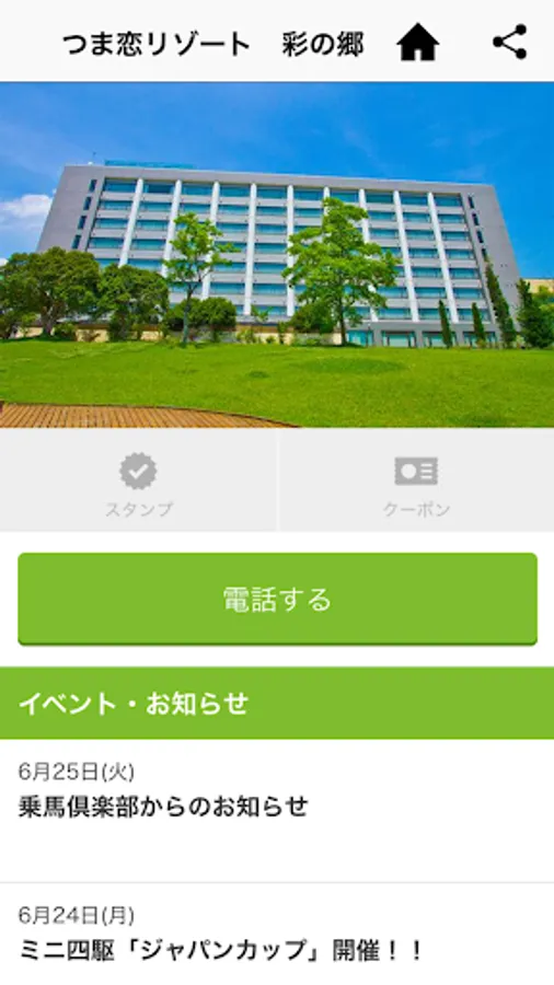 The official app for Tsumagoi Resort Sainosato includes the latest information on events at the resort, a stamp card that collects when you use the restaurant "Jardin" and the recreation center, and special seasonal coupons exclusively for app members. are available.