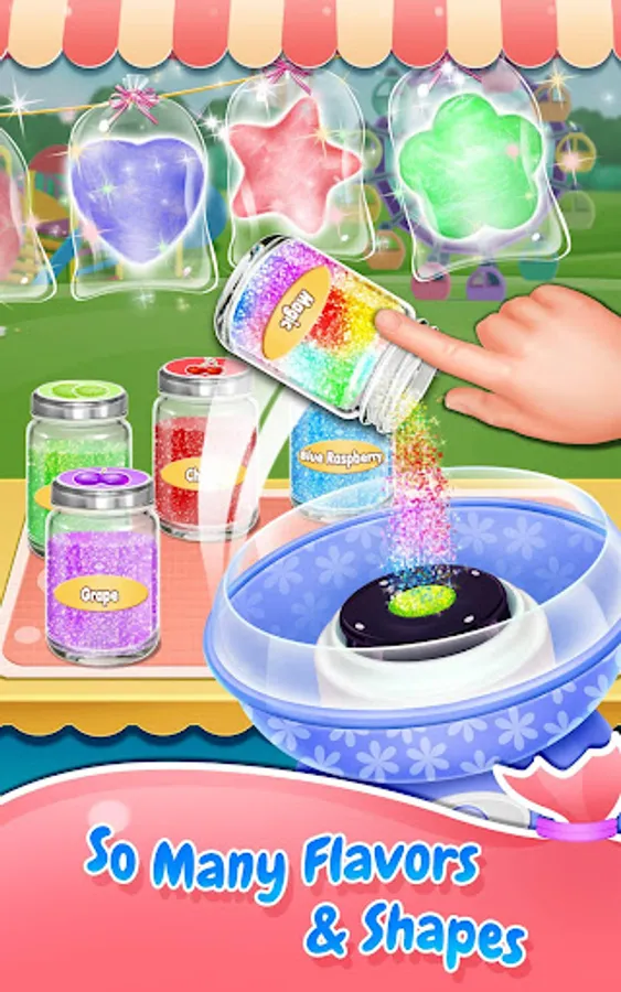 What's tastier than fluffy, sugary, so-much-fun-to-eat cotton candy? Ever wanted to make your own fairy floss? Of course you have, it would be more wonderful to have cotton candy shop around the carnival! Fantastic! Run your own sweet cotton candy shop, design your shop, make your own food and sell to the customers. You are the real shop owner and an expert cotton candy maker. Let's play right away.