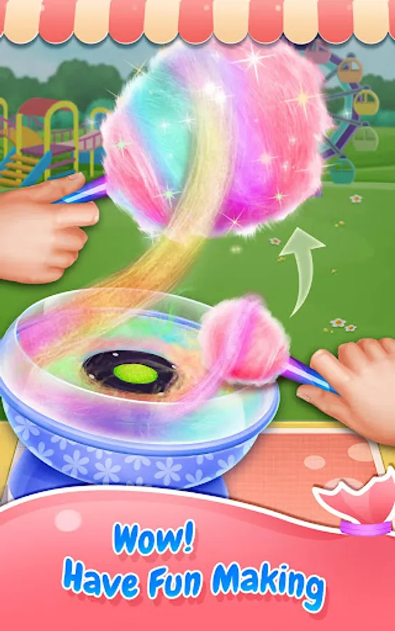 - Tap to open the machine & drag the stick to make your cotton candy