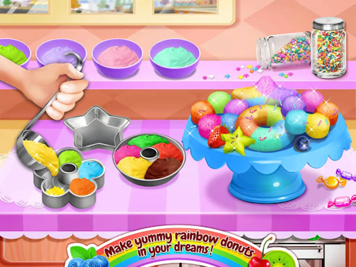 -Make yummy rainbow desserts for rainbow donuts, rainbow cupcake and rainbow shortcake