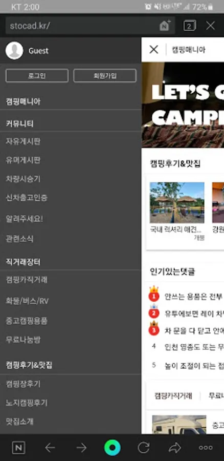 Korea's No.1 Camping Community / Camping Information / Used Camping Cars / Camping Car Direct Transactions / Outdoor Camping Sites / Camping Supplies Transactions