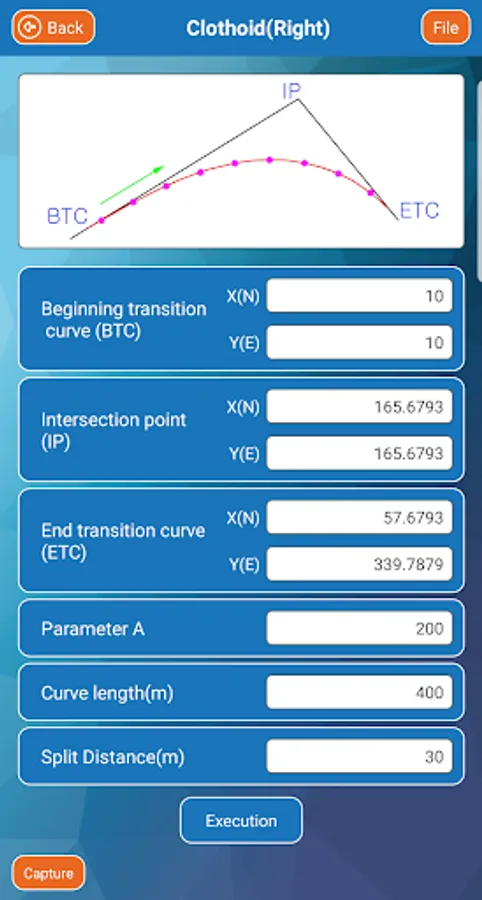 . All the coordinates of a clothoid line can be extracted and used at desired intervals.