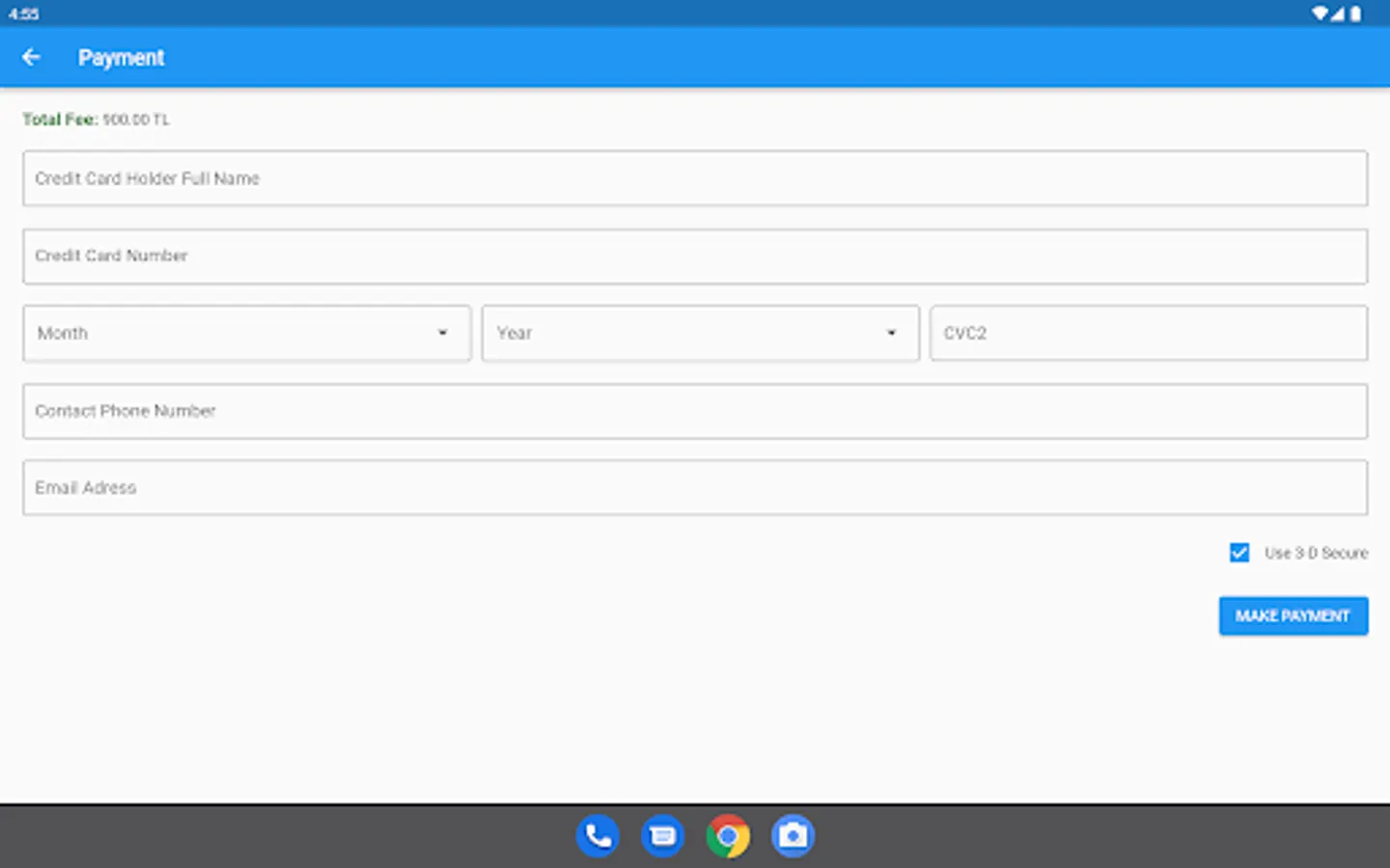 Rotam Denizcilik ferry booking application supports 3d-secure payments.