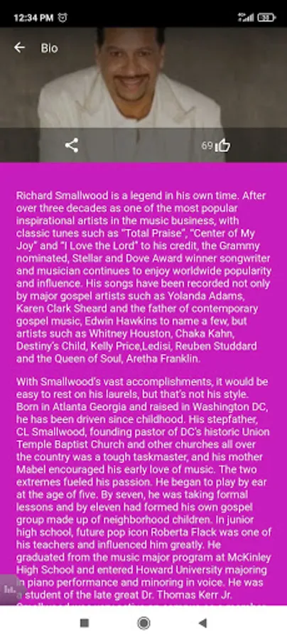 Richard Smallwood is a Stellar, Dove and Grammy Award Winner. He has over 30 years of success in the music industry.