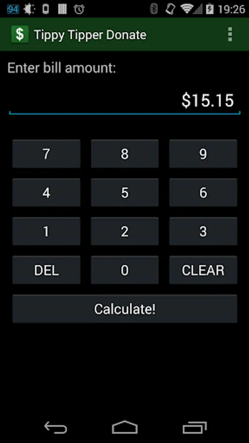 * Enter bill via custom keypad