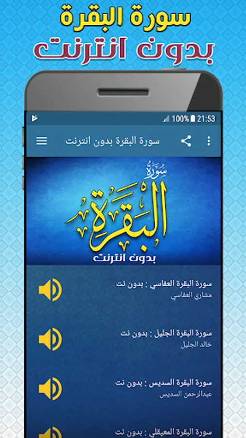 A distinct application of Surat Al-Baqara with the voice of the most famous reciters