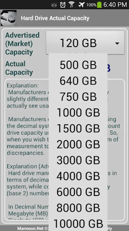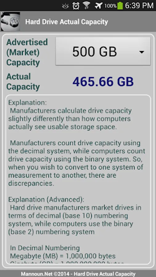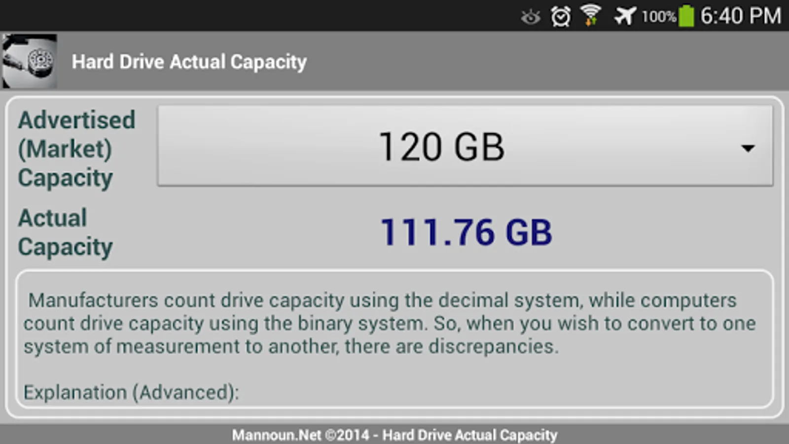 Use this simple program to calculate actual hard disk drive capacity from advertised (market) one.