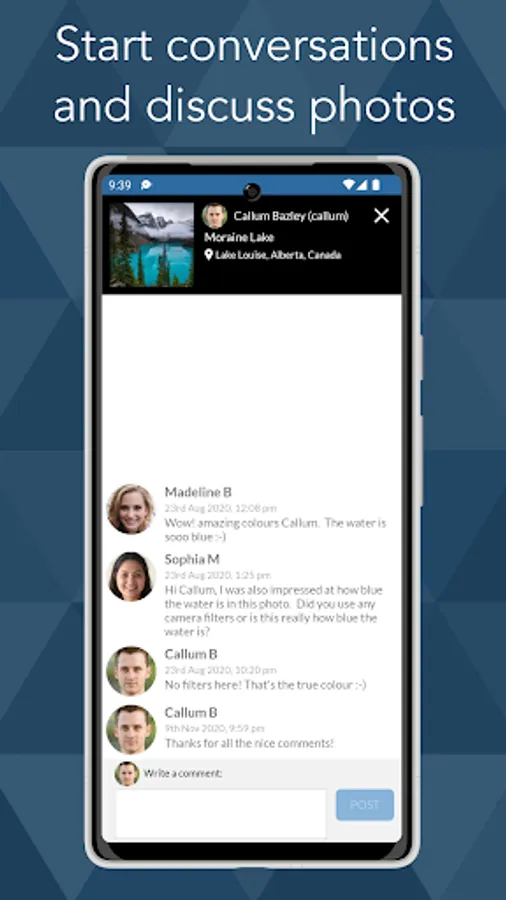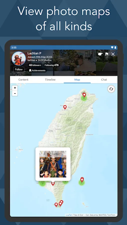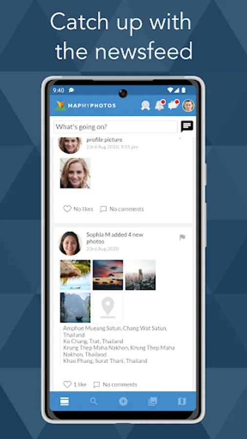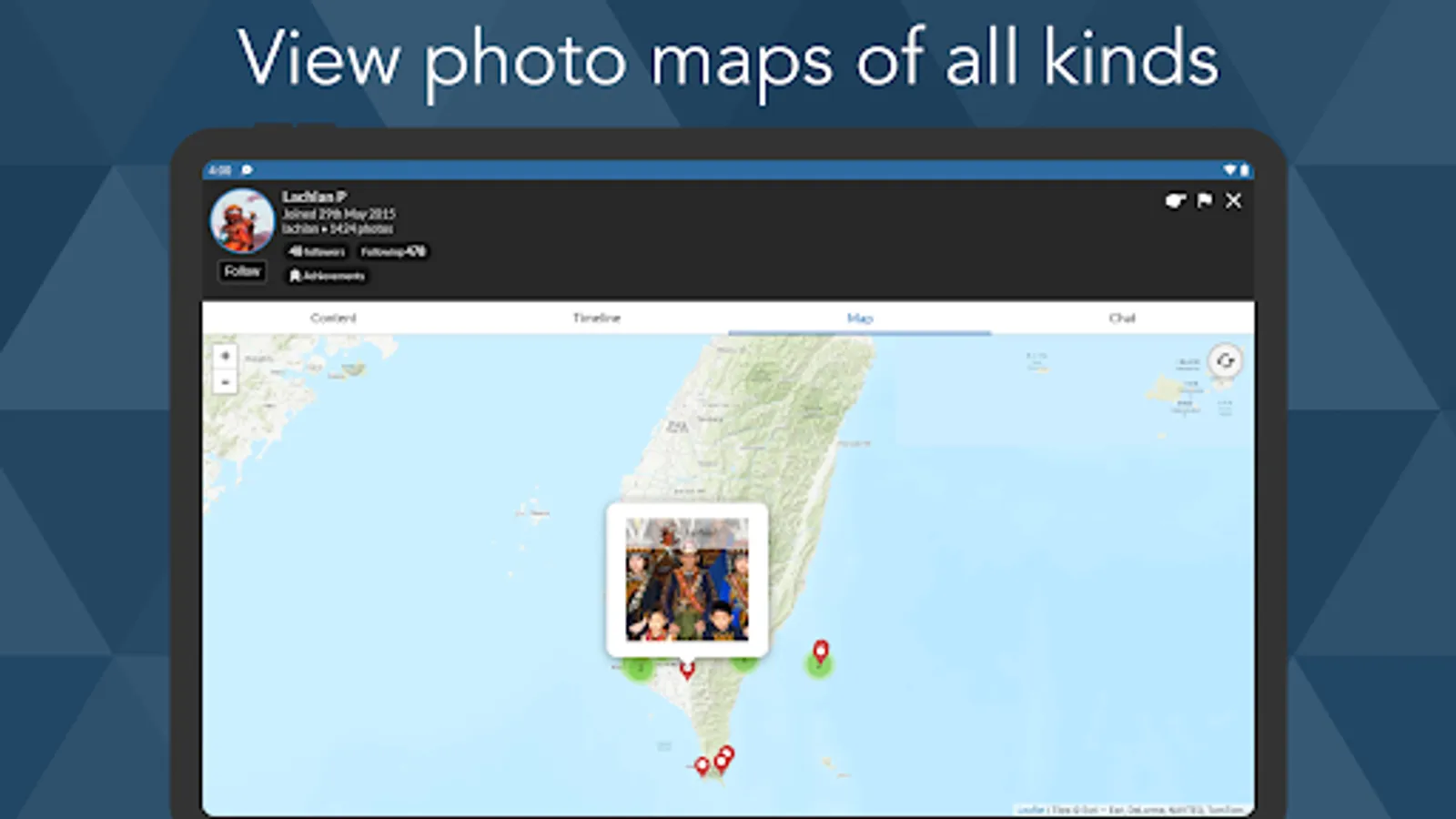 With MapMyPhotos, you can make your own photo map or find photos from other members around the world. It's a photo mapping community! You can follow your favourite members to get updates on where they are taking photos. Strike up a conversation and comment on photos, or you can like posts on the newsfeed.
