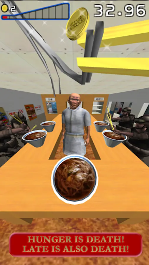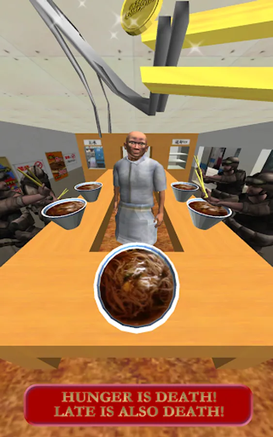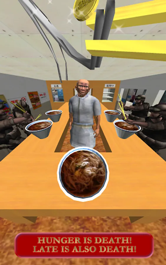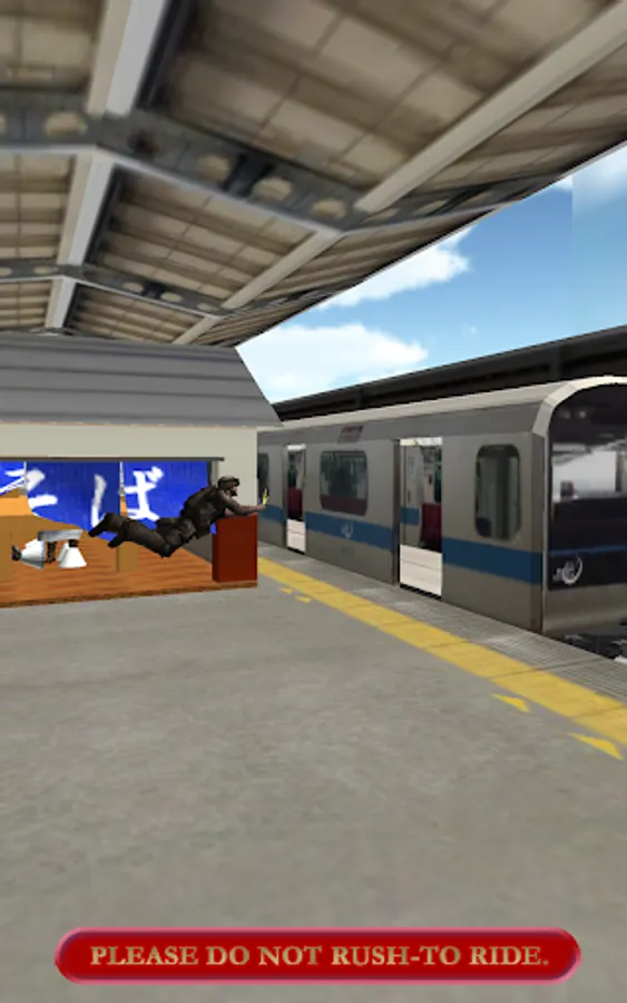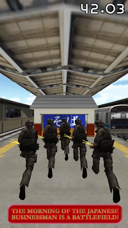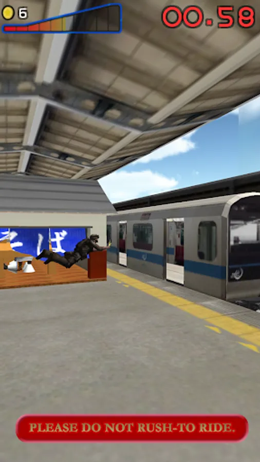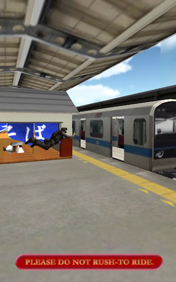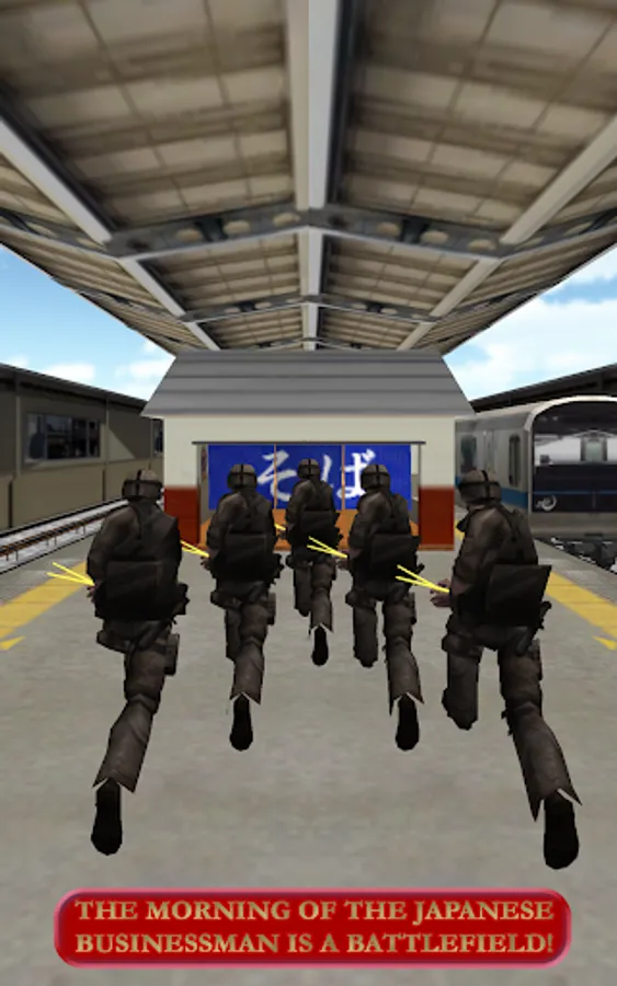 Eat the soba by swiping on the screen upwards. If satiety goes up, you will be ready to get on a crowded train. Can you ride being hungry? It means death.