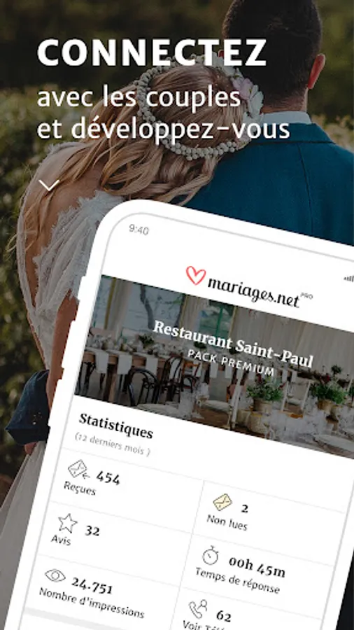 The free application that allows you to take maximum advantage of your business. Essential for thousands of firms in the portal Mariages.net, best wedding directory internationally.