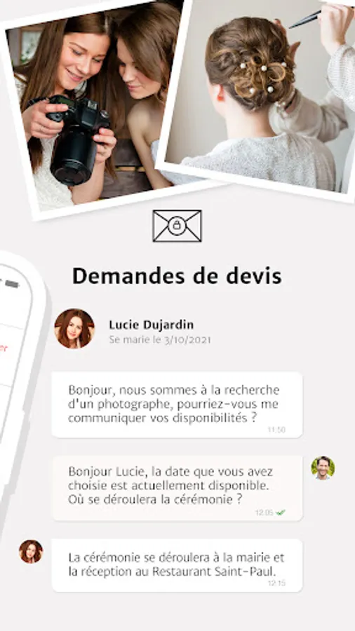 With the professionals for application, you will be informed at any time of the activity on your profile and will be permanently contact with the bride and groom from your phone.