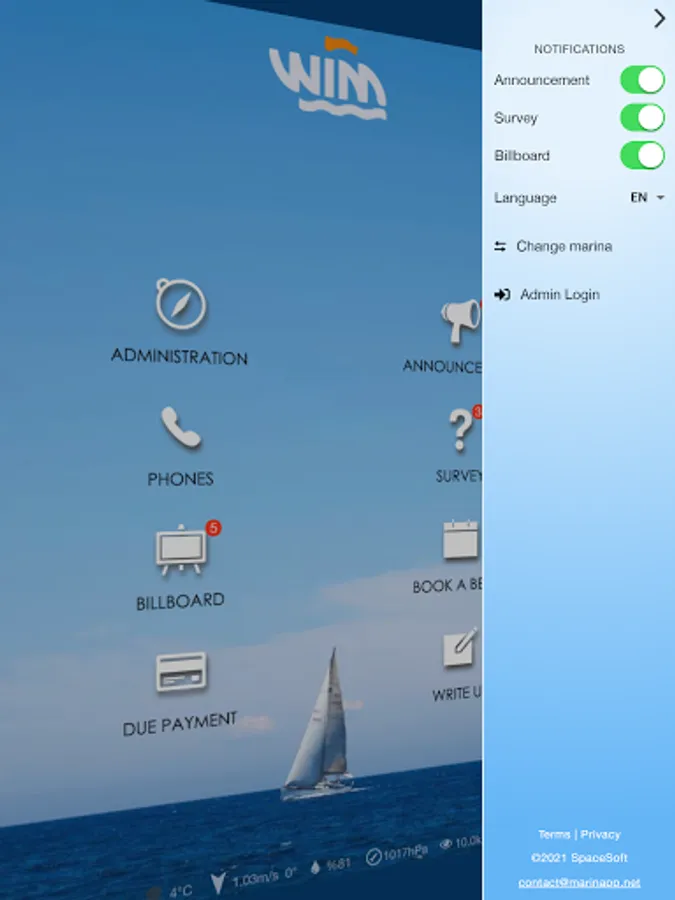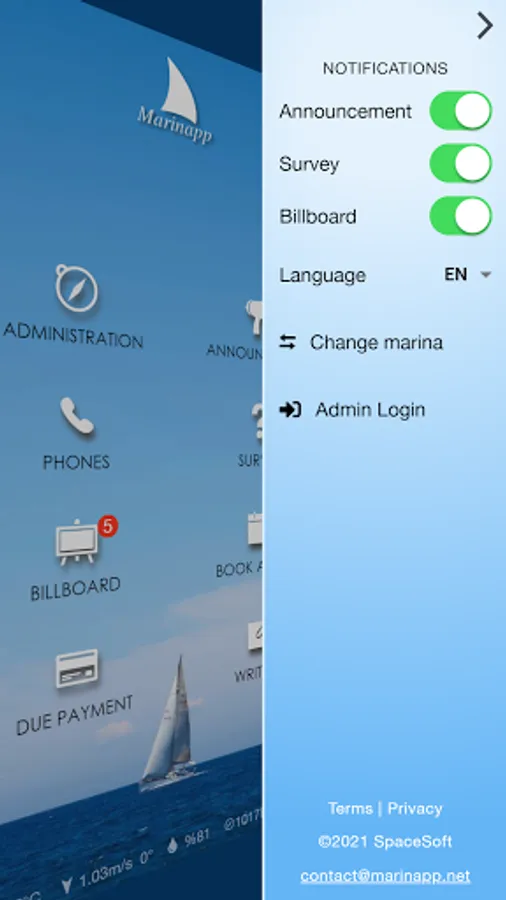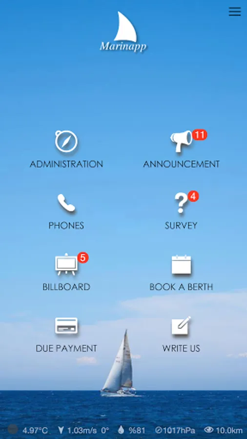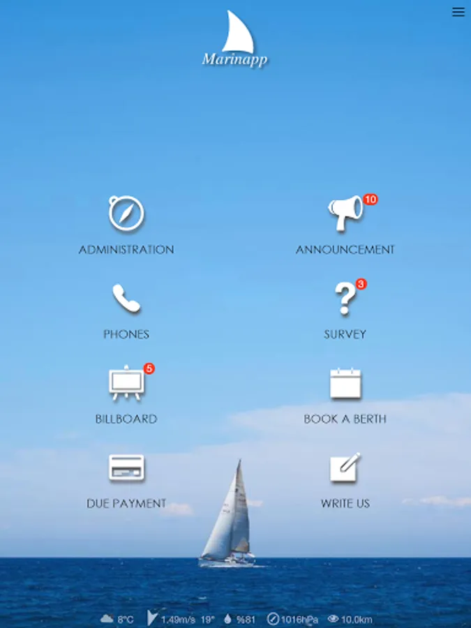 Marinapp is a mobile application that enables marina management communicate with their customers in a effective and prestigious way. All the fundamental issues you need to communicate with your customers are practical and simply prepared in the Marinapp application. As the marina management; you can transmit announcements to hundreds of the boat owners and instantly collect requests from them. You can book a berth, make a questionare, collect fees... In addition to all of these; thanks to Digital Billboard in the application, your marina benefits a significant amount of income while offerening benefits to your members. You can start using the application in your marina today, as many exclusive marinas of the world do.
