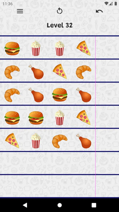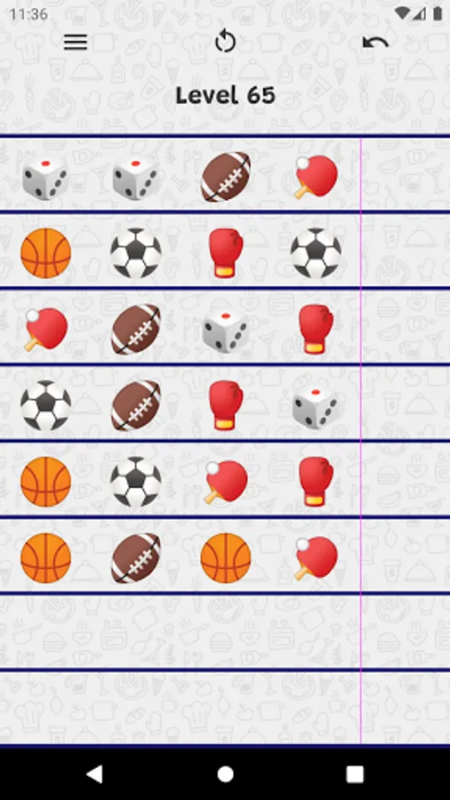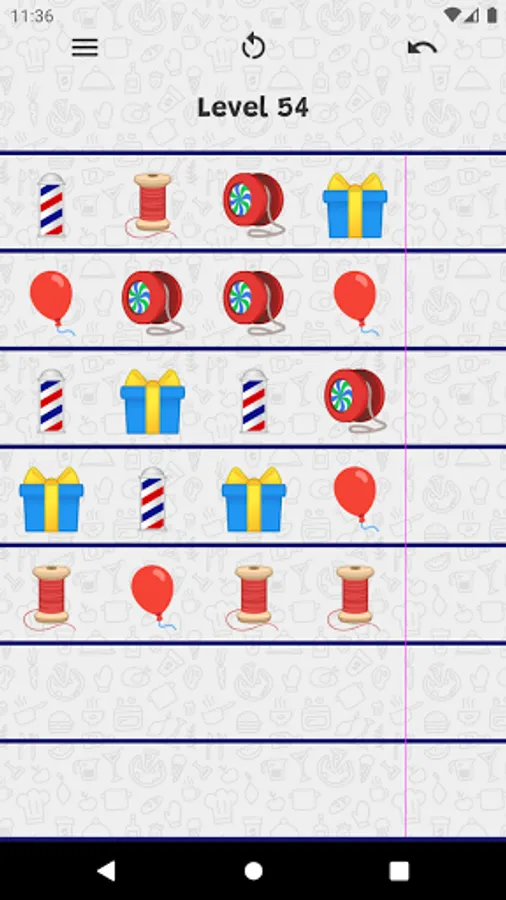 Sort the items on the board until all the lines contain the same type of items. All you need is one finger!