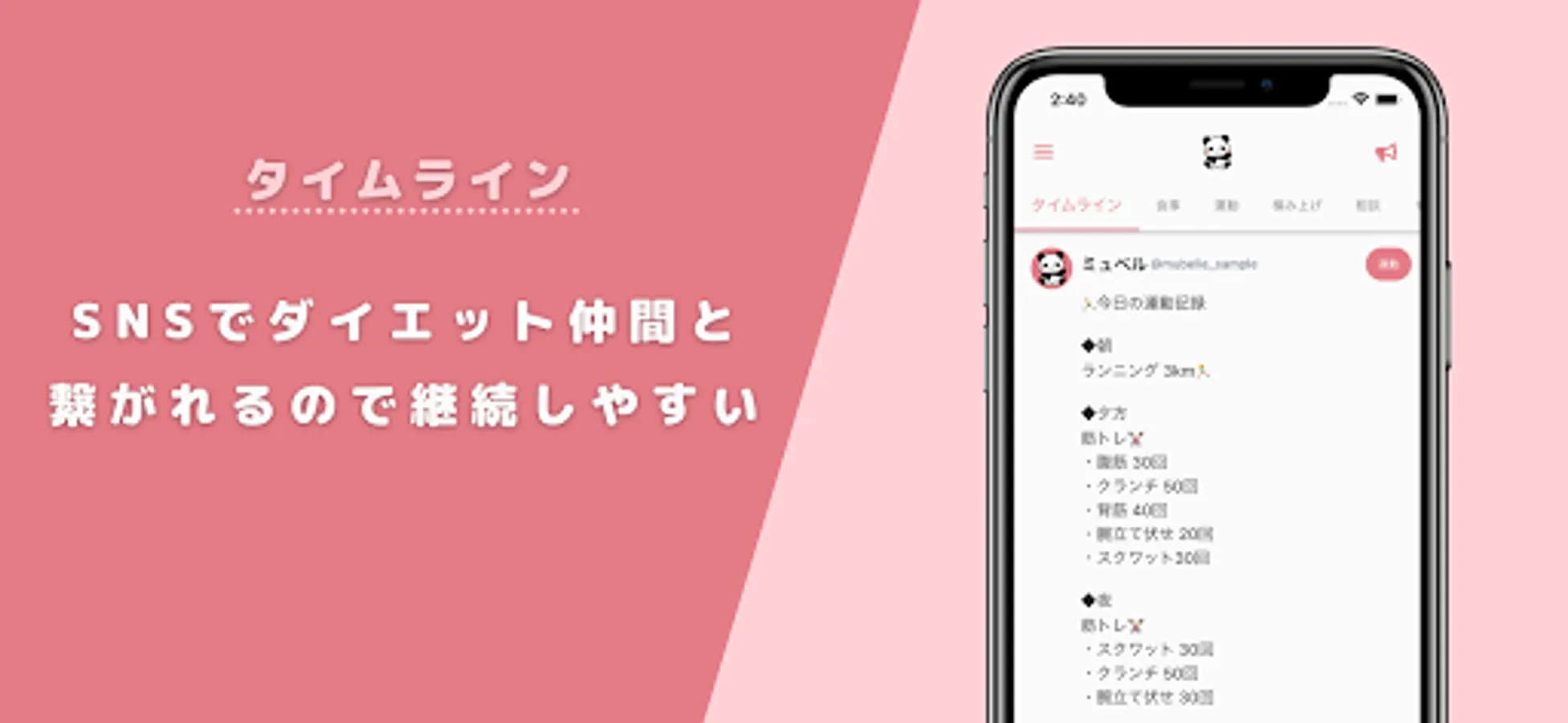 Full of familiar functions on SNS! By connecting with people who have the same goals, it becomes commonplace to go on a diet.