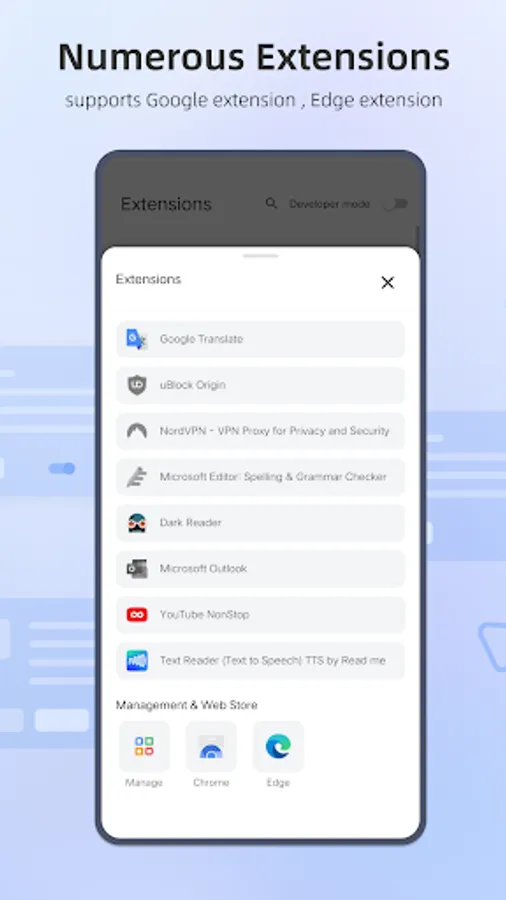 Mask Browser is a simple Android browser that supports both Google Browser and Microsoft Edge extensions, providing a perfect dual experience of fast browsing and personalization.