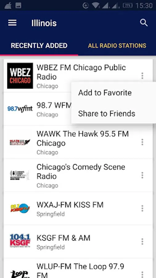 If you like the app "Illinois Radio Stations" give us a 5 star rating ★★★★★ so we can continue improving the app for you!