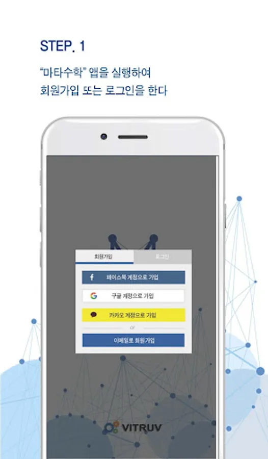 - 1. “마타수학” 앱을 실행하여 회원가입 또는 로그인을 한다.