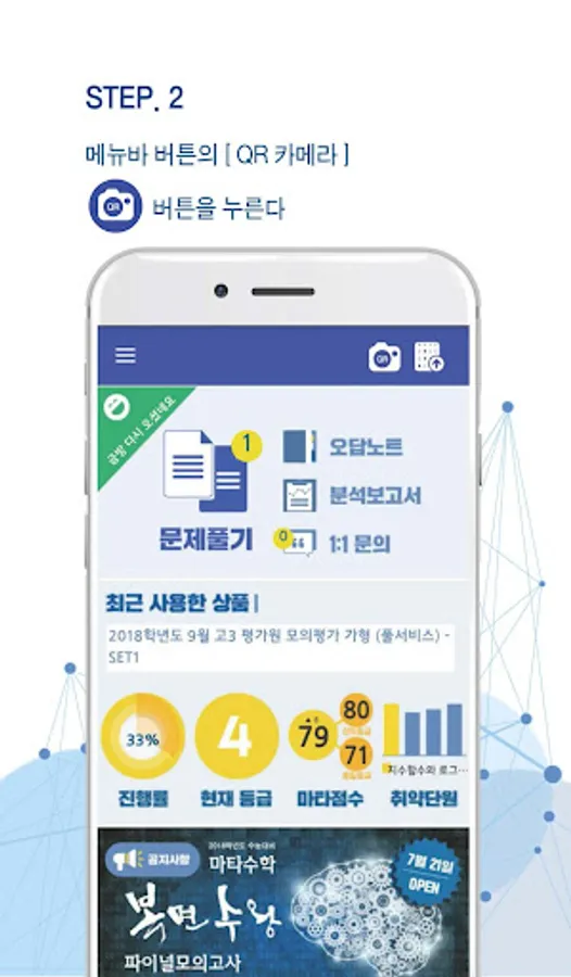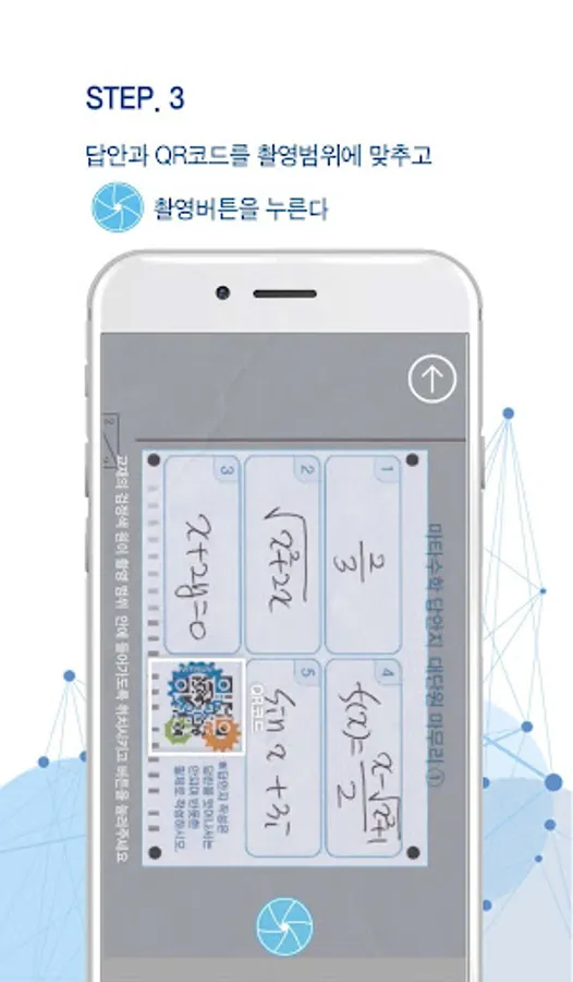 - 3. 답안과 QR코드를 촬영 범위에 맞추고 촬영 버튼을 누른다.
