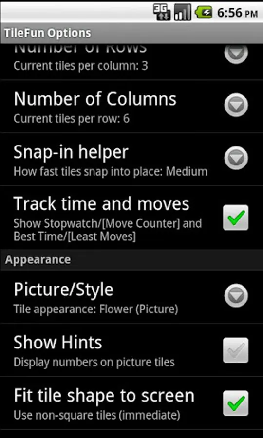 (*) NOTE: With Android 4.4 TileFun does require the permission to "read USB storage" in order to allow playing puzzles with your own photos. You may also NEED to use the built-in Gallery-App for picking your own pictures!