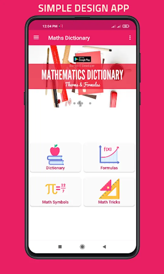 maths dictionary and formula is a complete app for students and teachers and contains over 5500 Maths terminology covering all commonly encountered maths terms and concepts, and also Math Symbols and Math Tricks and all basic formulas in mathematics It includes: