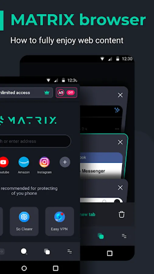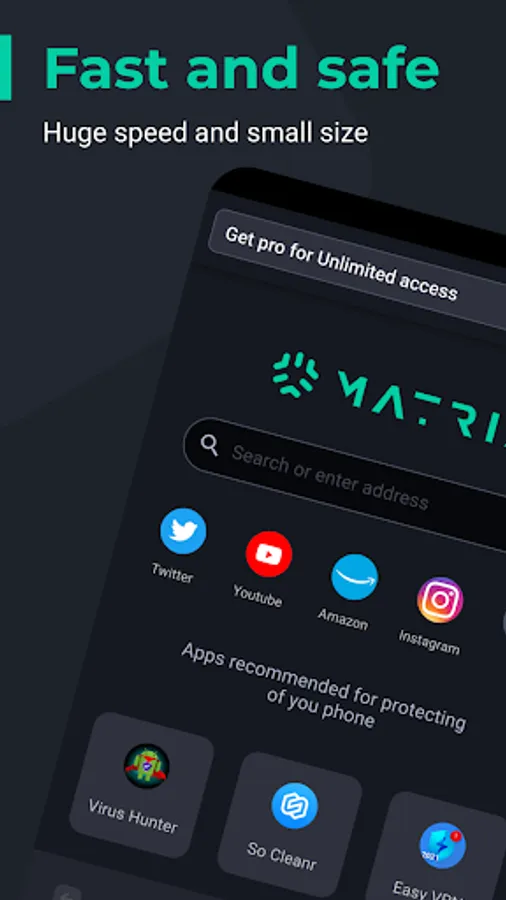 Matrix browser is one of the fastest, simplest and most convenient browsers for your smartphone. The interface translated into all languages will allow you to quickly understand all the functions, and the dark theme will provide protection for your eyes!