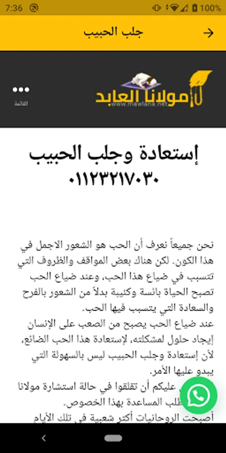 Mawlana Al-Abed has gained great fame and a reputation among the people for his spiritual treatments and services that he provides to all without discrimination, helping people to get rid of the trivial problems that make their lives difficult.