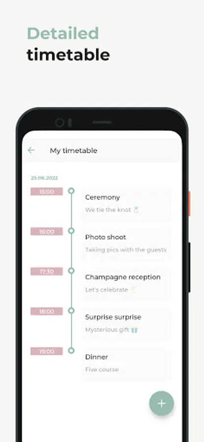 Use the timeline to plan your wedding or other important events ahead. Add activities and special occasions to your timeline in advance and be relaxed on your Big Day.