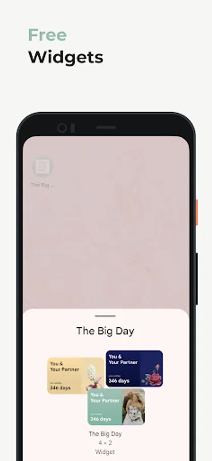 Add our free countdown widget to your home screen to see the remaining time until your wedding. You can even use your own photo and choose from three different widget layouts and sizes.