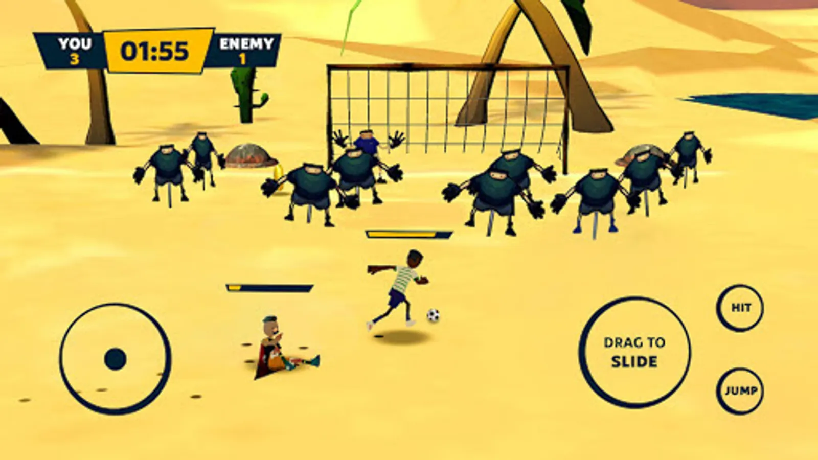 Enter, if you dare! You've never seen a football game like this before. As you master each level, you'll find new elements that you never knew existed in a football game! With shooting and scoring, you'll be able to earn coins to unlock new characters and customize them with amazing haircuts, shirts, shoes, and headgears!