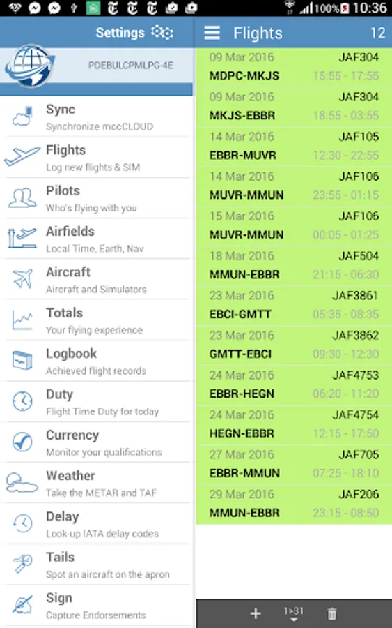 - export your flights and sim records to the Android Calendar