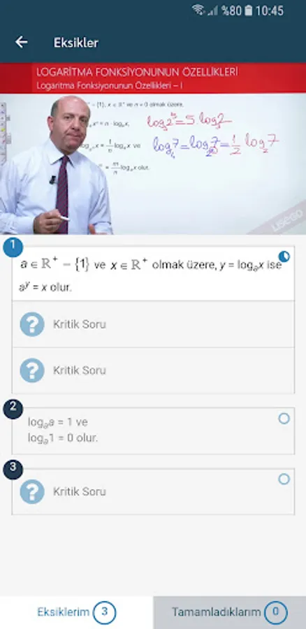 The personalized study planning offered in high school classes and during the university preparation process allows students to work step by step with tens of thousands of different types of questions and solution videos.