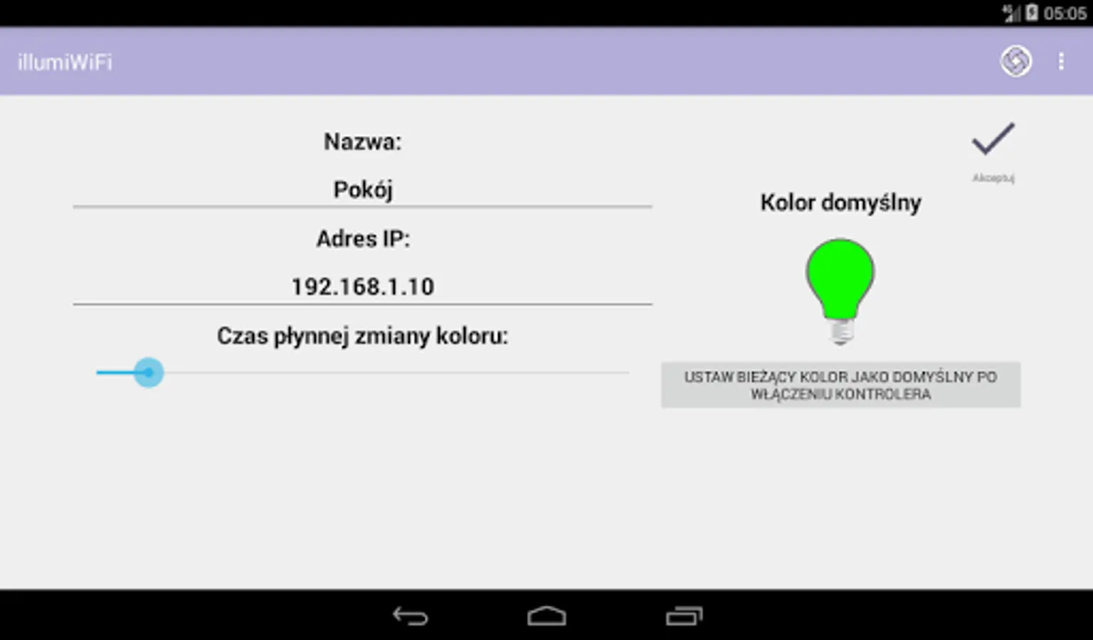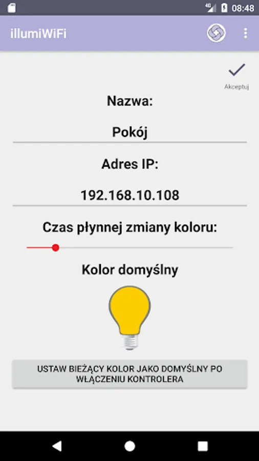 Aplikacja sterująca przeznaczona jest do sterowników Illumi WiFi LED.